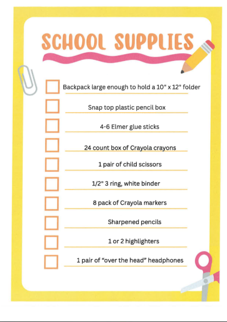 Kindergarten Supply List
