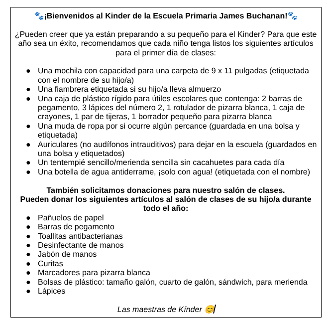 Kindergarten Supply List