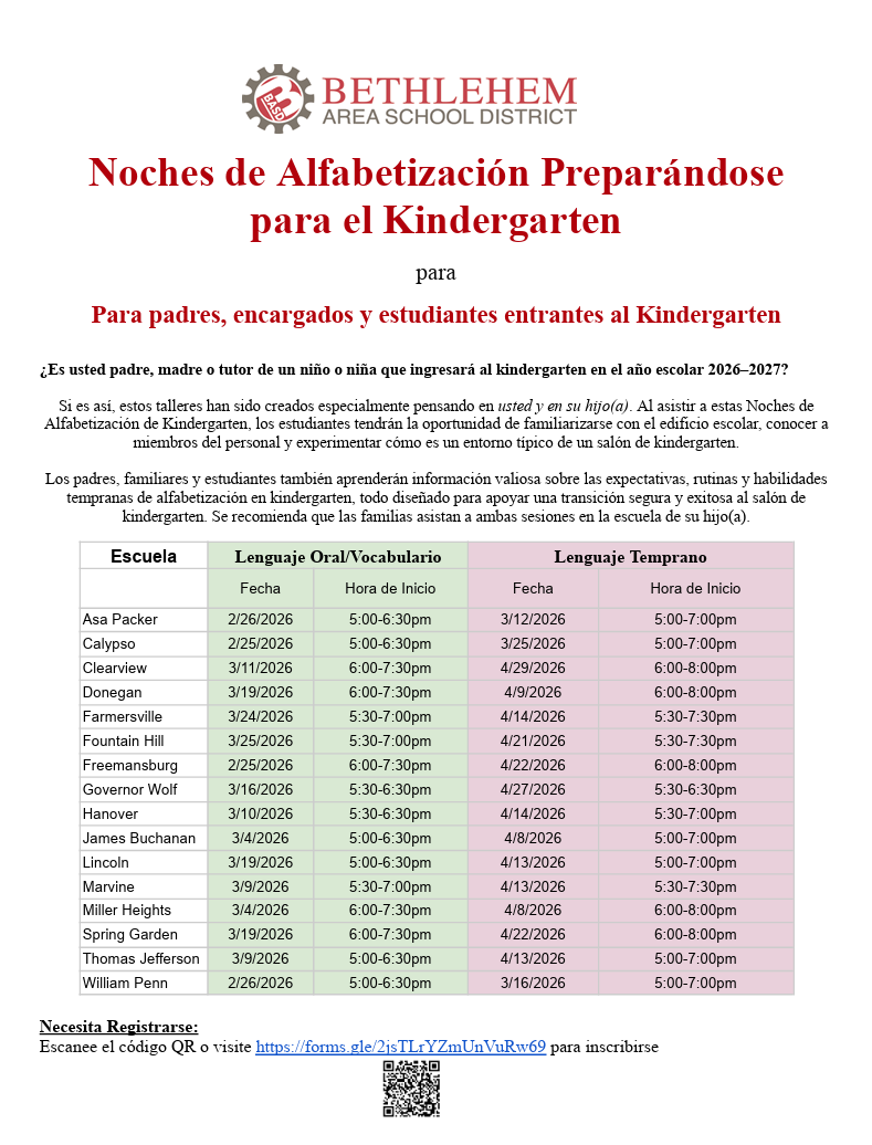 2026-2027 Kindergarten Registration