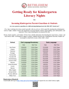 Getting Ready For Kindergarten Literacy Nights